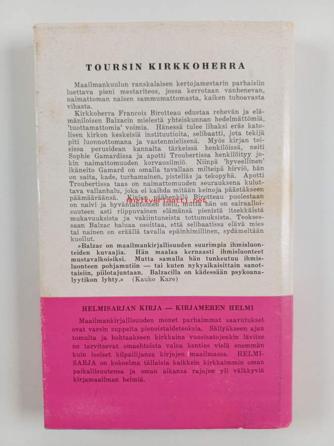 Muu(t) tekijä(t): Kauko KareSarja: Helmisarja 14Alkuteos: Le curé de Tours