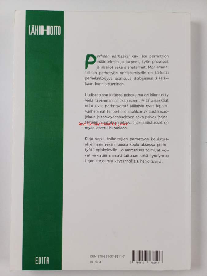 Muu(t) tekijä(t): Ritva Järvinen, Arja Virolainen ym.Sarja: LähihoitoAsiasanat: historia, asiakaslähtöisyys, asiakkaat, palvelut, lainsäädäntö, perheneuvonta, lastensuojelu, vanhemmuus, elämänhallinta, perheet, sosiaalityö, vuorovaikutus, ammatillinen kehitys, ammattitaito, osaaminen, neuvolat, lapsiperheet, päivähoito, vertaisryhmät, tukeminen, arvostus, menetelmät, perhetyö, asiakkuus, moniammatillisuus, sosiaaliset verkostot, työmenetelmät, dialogisuus, palvelujärjestelmät, osallisuus, lapsilähtöisyys, lapset (ikäryhmät), professionalismi, perhekeskeisyys, parityöskentely, ammatillinen tieto
