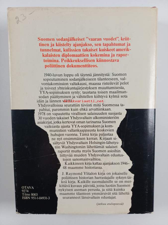 Salasanomia Helsingistä Washingtoniin : muistelmia ja dokumentteja vuosilta 1946-48 (signeerattu, tekijän omiste)