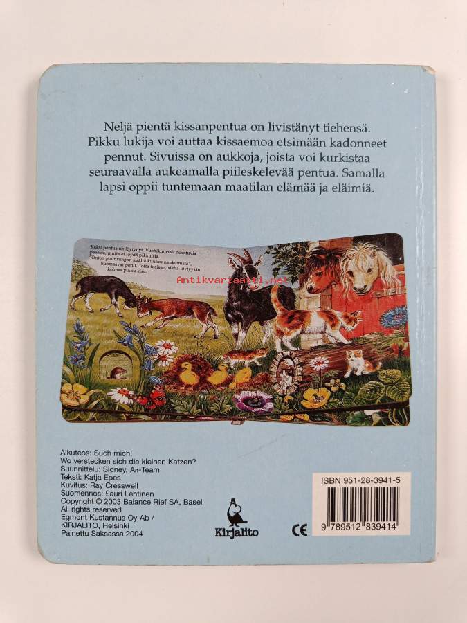 Muu(t) tekijä(t): Lauri Lehtinen, Ray CresswellAlkuteos: Such mich! : wo verstecken sich die kleinen Katzen?Asiasanat: kissa, kotieläimet, suomenkielinen kirjallisuus, etsintä