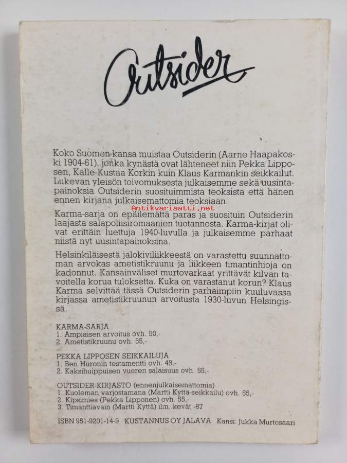 Merkinnät: omistajamerkintäSarja: Karma-sarja 2Asiasanat: salapoliisikirjallisuus, rikoskirjallisuus, jännityskirjallisuus