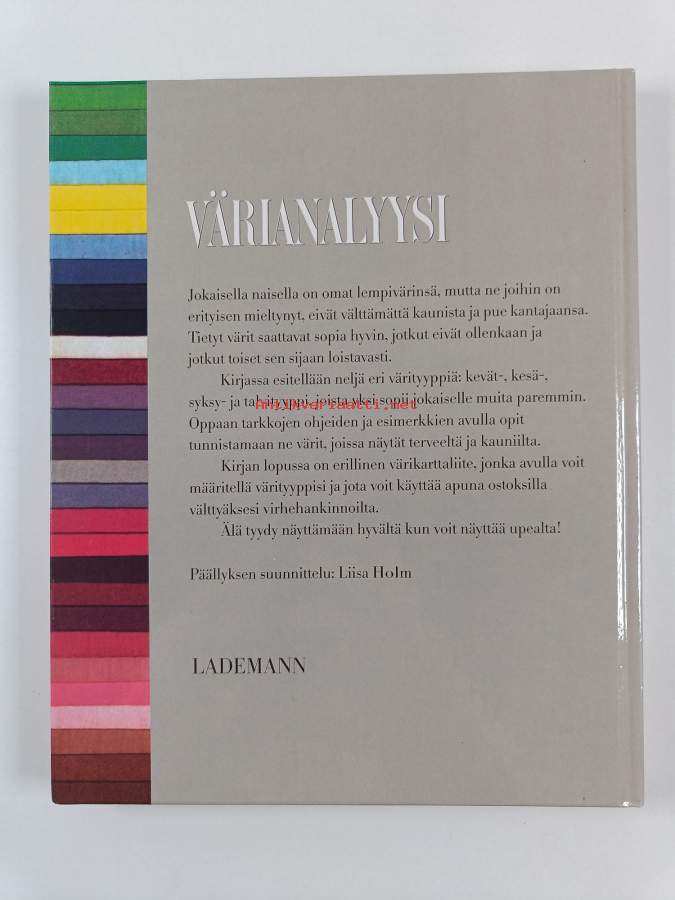 Muu(t) tekijä(t): Anneli JuhokasAlkuteos: FarbberatungAsiasanat: värit, pukeutuminen, kauneudenhoito, värianalyysi