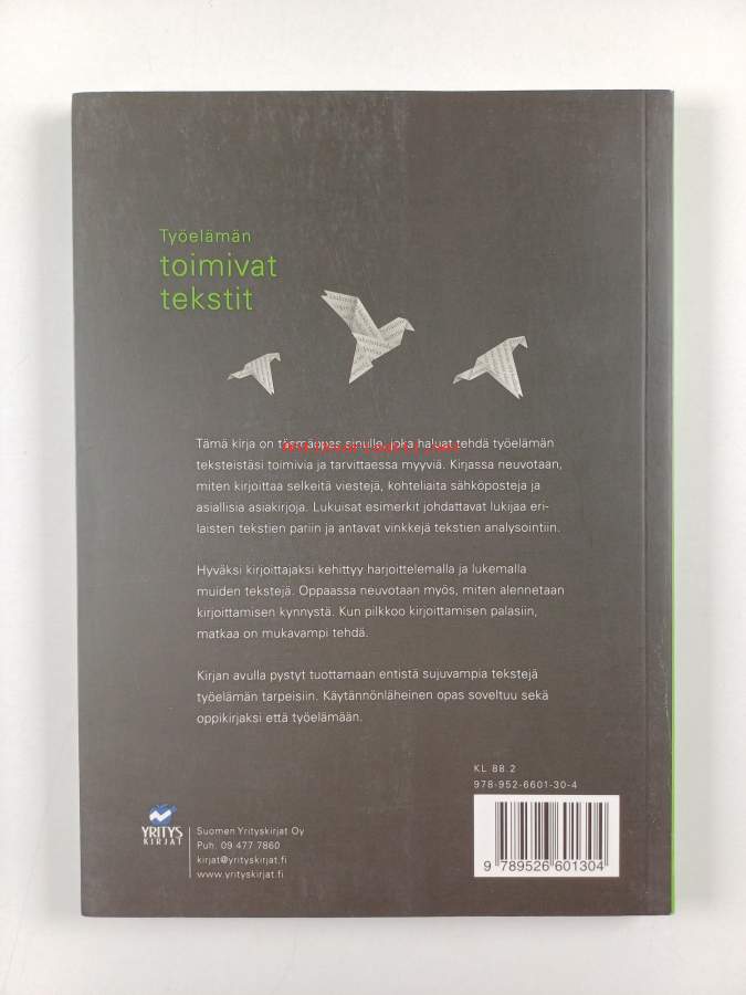 Asiasanat: suomen kieli, liike-elämä, kirjoittaminen, kielioppaat, oikeakielisyys, työelämä, viestintä, asiakirjat, asiakirjaoppaat, kirjallinen viestintä, sähköposti, verkkoviestintä, yhteisöviestintä, verkkokirjoittaminen, oppaat (teokset), lomakkeet, liikeviestintä, yritysviestintä
