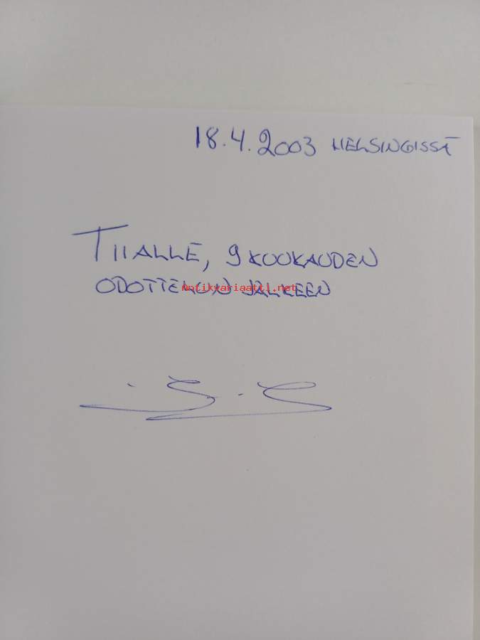 Hyvä. Tarkempi kuntoluokka: K3+ ; Hieman kolhua selkämyksen päissä, hieman tahraisuutta takakannessa, selkämyksessä aavistus vinoutta