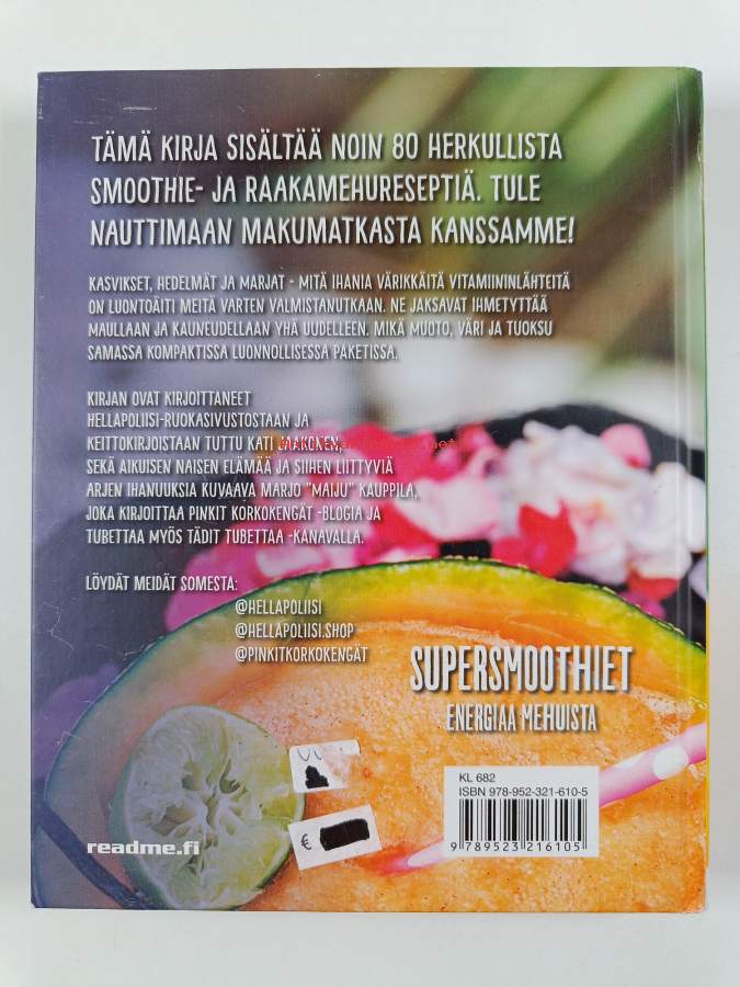 Muu(t) tekijä(t): Marjo KauppilaAsiasanat: ruokaohjeet, terveysvaikutukset, mehut, tuoremehut, terveellisyys, smoothiet, energiansaanti, raakaravinto, drycker, saft, smoothies, energidrycker