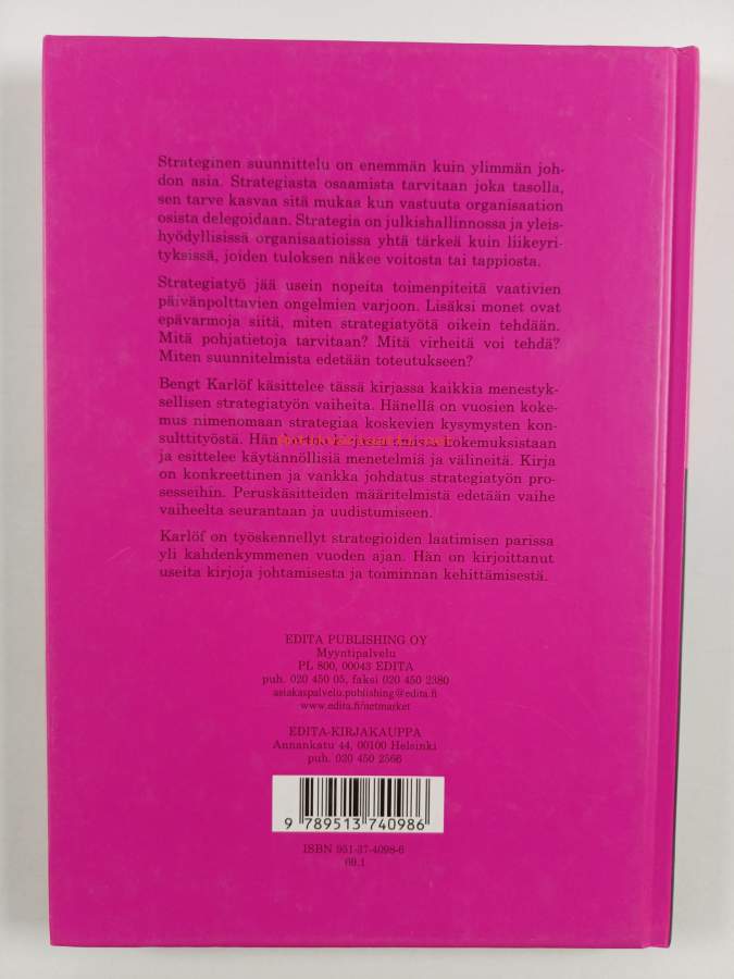 Muu(t) tekijä(t): Maarit TillmanAlkuteos: Strategins processer och verktygAsiasanat: yritysstrategiat, strateginen suunnittelu, strategiat
