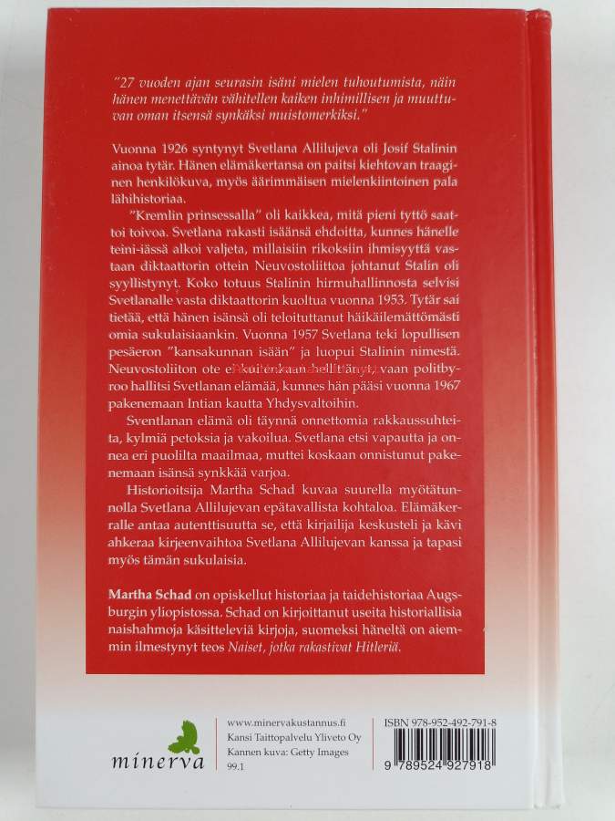Muu(t) tekijä(t): Maikki SoroAlkuteos: Stalins TochterAsiasanat: elämäkerrat, henkilöhistoria, poliittiset johtajat, perheet, valtionpäämiehet, tyttäret, lapset (ikäryhmät), biografier, personhistoria, barn (åldersgrupper), familjer, politiska ledare, statsöverhuvud, döttrar