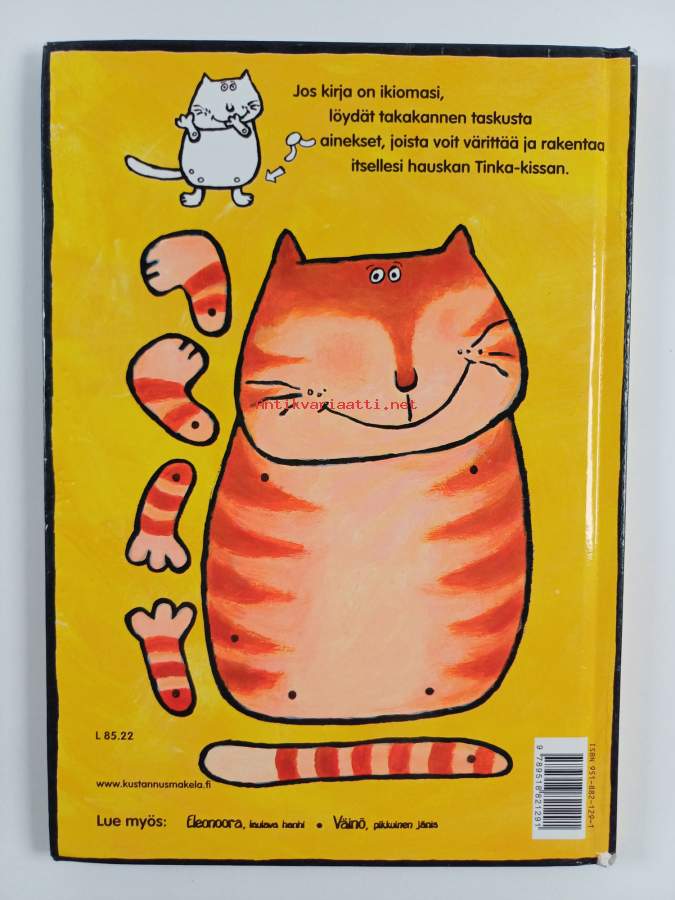 Hyvä. Tarkempi kuntoluokka: K3- ; Hieman kolhua kulmissa, hieman naarmuisuutta kansissa, selkämyksessä hieman vinoutta. tinka-kissa puuttuu