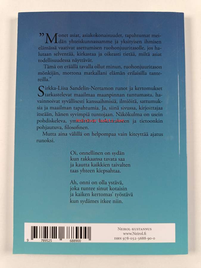 Asiasanat: elämäntapa, runot, havainnointi, muistelu, omaelämäkerrallisuus, ihmiset