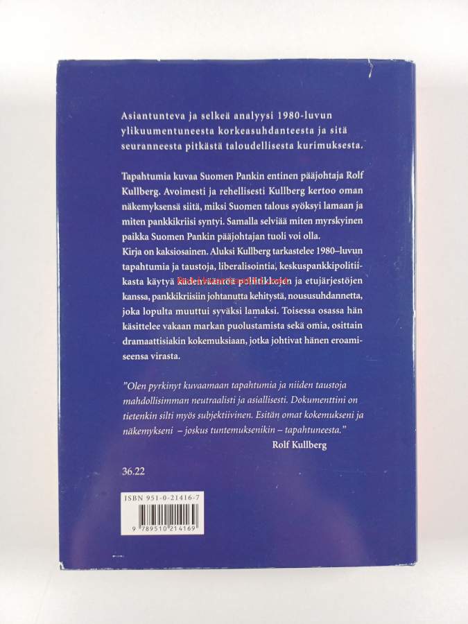 Hyvä. Tarkempi kuntoluokka: K3+ ; Pienoista kolhua yläkulmissa, pienoista kulumaa kansissa. Kansipaperin kunto: jonkin verran kulumaa/pienoisia repeämiä