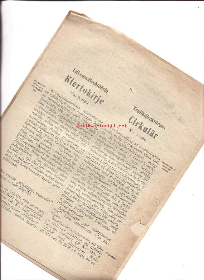 Liikennetirehtöörin Kiertokirje nr 2/1698 1918korvausanomukset