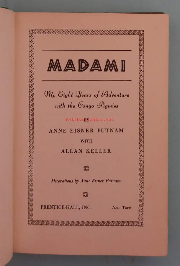 Muistelmat kuvaavat Anne Eisner Putnamin kahdeksan vuoden elämää ja tutkimusmatkoja Kongon sademetsissä pygmien parissa: havainnointia pygmien kulttuurista, tavoista ja arjesta + valokuvia ja piirroksia. Kuvitettu. Dimensiot 21 ¤ 14 cm.