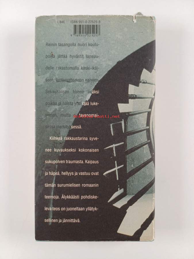 Hyvä. Hieman kulumaa, hieman kolhua kansissa, selkämyksessä aavistus vinoutta. Kansipaperin kunto: joitain repeämiä/kulumaa & tahraisuutta