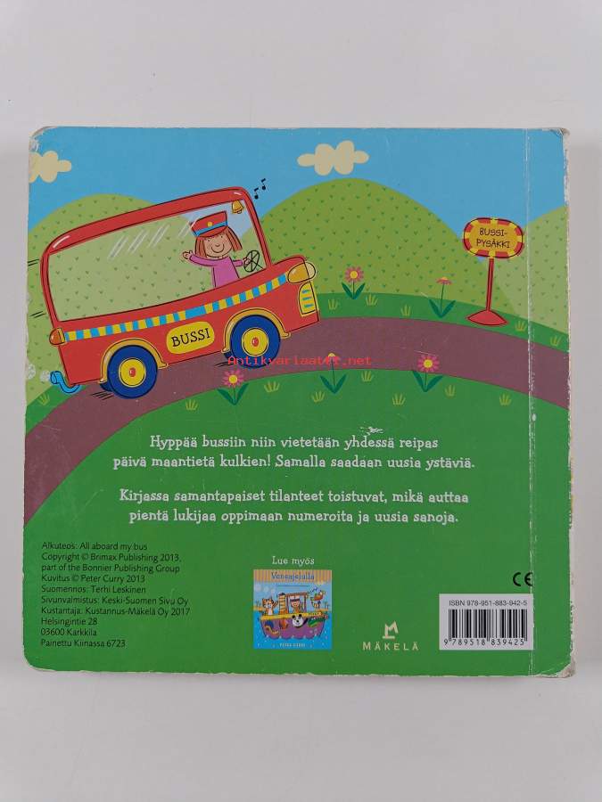 Muu(t) tekijä(t): Terhi LeskinenAlkuteos: All aboard my busAsiasanat: linja-autot, numerot, laskeminen
