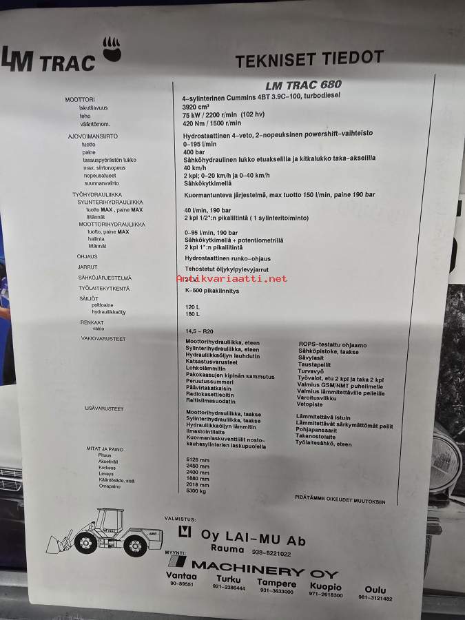 LM TRAC 686 monitoimikone - Käyttäjän ohjekirja -käyttöohjekirja KOPIO / operator´s manual in finnish, COPY
