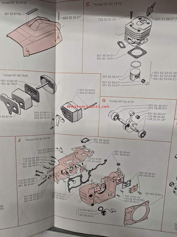 Husgvarna 234 moottorisaha varaosa luettelo