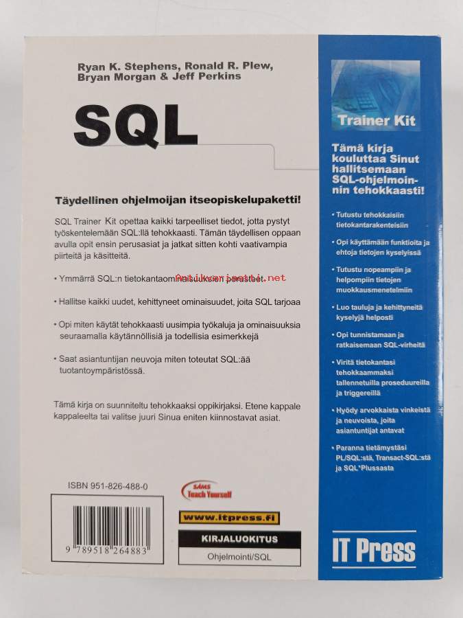 Muu(t) tekijä(t): Jussi Arola, Bryan Morgan ym.Sarja: Trainer kitAsiasanat: tietotekniikka, koodit, ohjelmointi, ohjelmointikielet, tietokannat, SQL, kyselykielet, tiedonhallintajärjestelmät, relaatiotietokannat, tietokantaohjelmat, programmeringsspråk, programmering, sökspråk, rakenne (ominaisuudet)