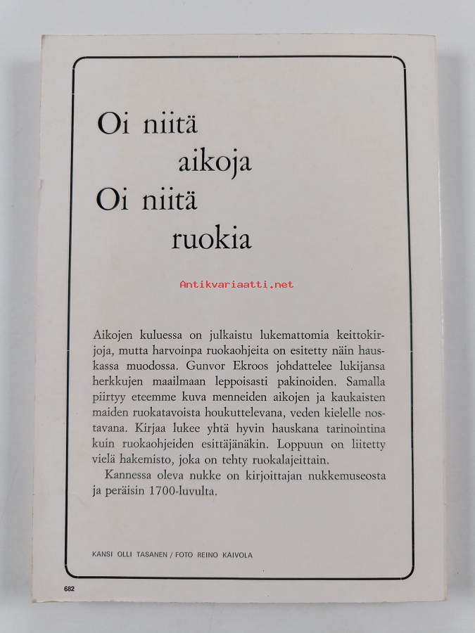 Oi niitä aikoja, 1996. Vanhat esineet ja valokuvat sekä kuvataiteilijain teokset kertovat elämästä Suomessa 1800-luvulla. 316 mustavalko- ja 95 värikuvaa.