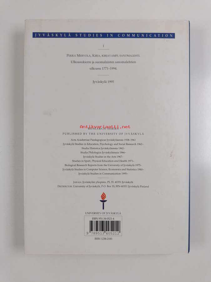Sarja: Bibliotheca historica 1; Jyväskylä studies in communication 1Asiasanat: historia, journalismi, lehdistö, sanomalehdet, toimitustyö, graafinen suunnittelu, typografia, taitto, Sanomalehdet Sanomakirja