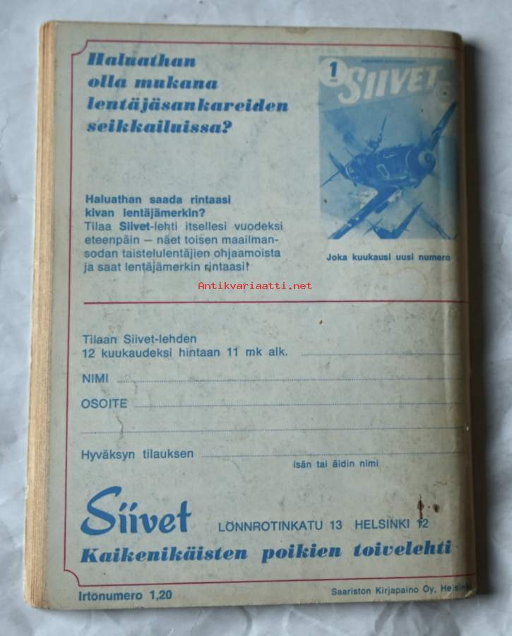 Suomen Siivet 1972 nr 4-5 - Ilmailuhistoriallinen lehti, Hurricanen historiaa osa 2. Savrov S-2, Hispano Ripon, Airspeed Envoy, Sotalentoja Heinkel vesikoneella, ym.