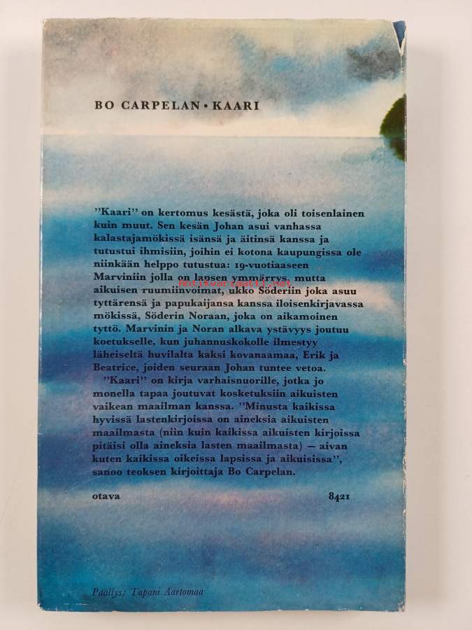 Hyvä. Tarkempi kuntoluokka: K3+ ; Selkämyksessä hieman vinoutta. Kansipaperin kunto: joitain repeämiä/kulumaa