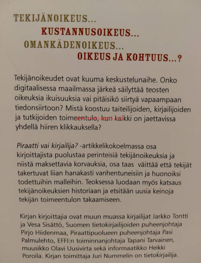 Piraatti vai kirjailija? : tekijän oikeuksia mittaamassa