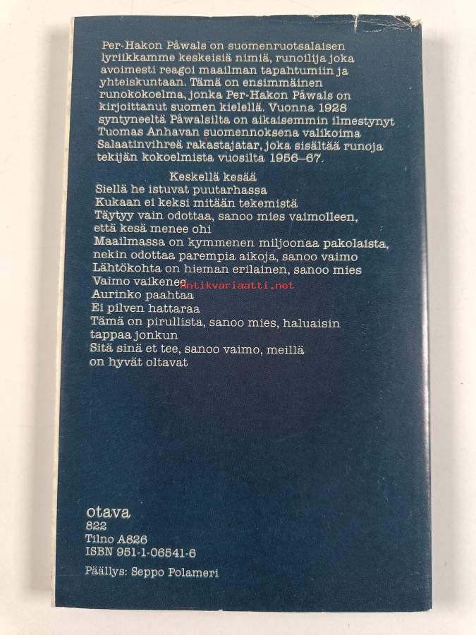 Hyvä. Tarkempi kuntoluokka: K3+ ; Pienoista taitejälkeä etukannen alakulmassa. Kansipaperin kunto: jonkin verran kulumaa/pienoisia repeämiä