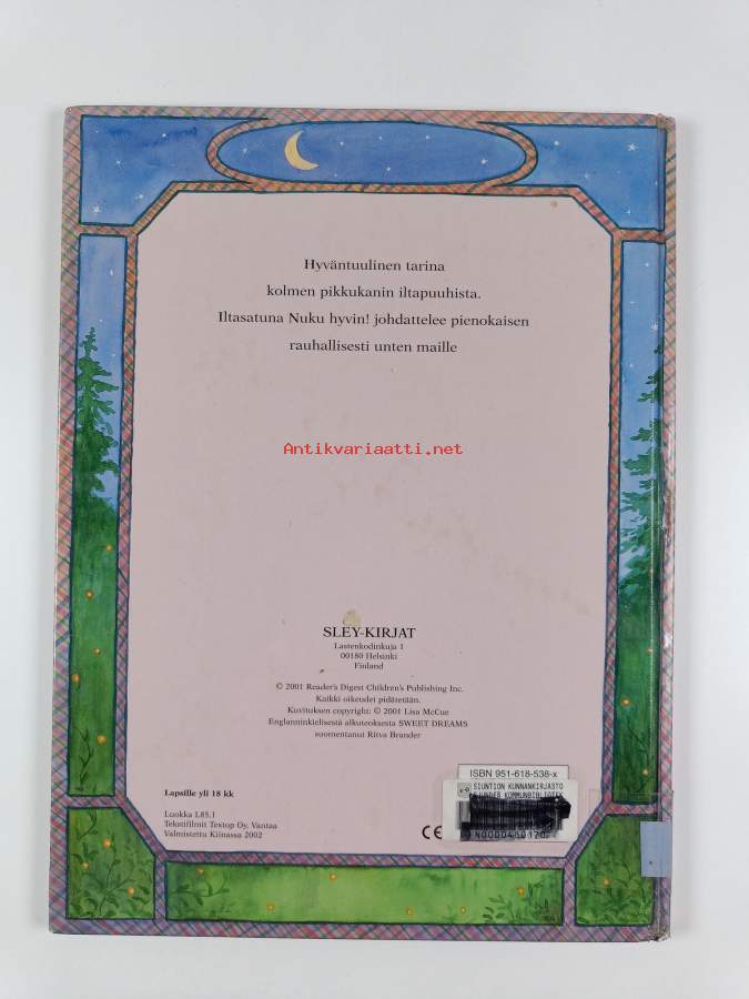 Muu(t) tekijä(t): Ritva Brander, Linda C. FalkenAlkuteos: Sweet dreamsAsiasanat: lastenkirjallisuus, kaniinit, kuvakirjat, nukkumaanmeno