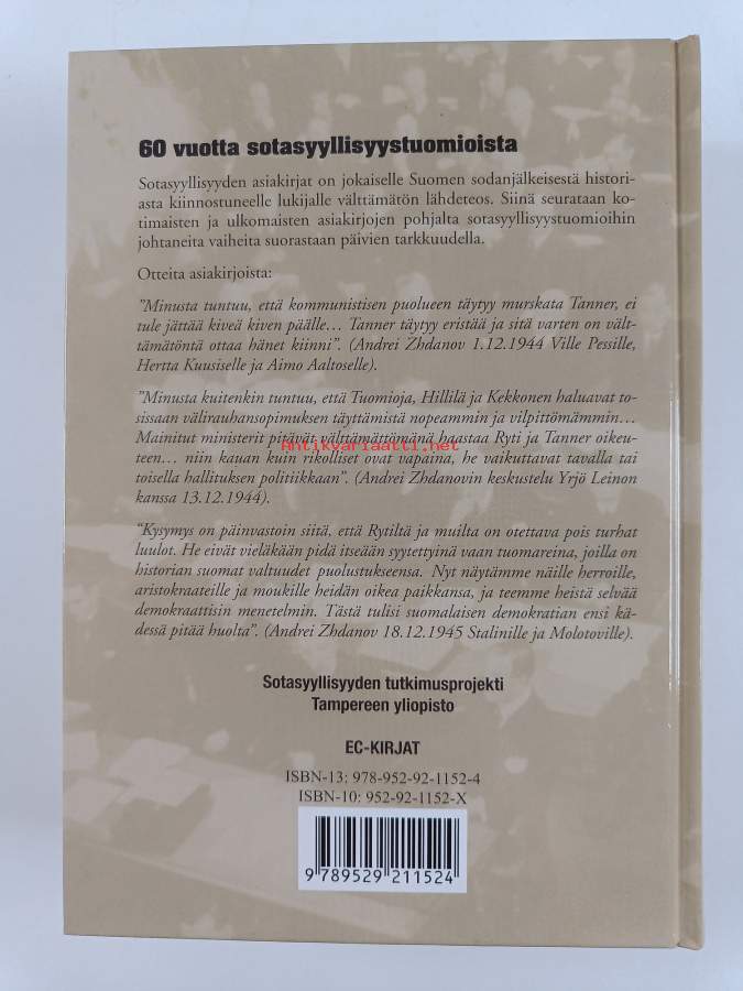Muu(t) tekijä(t): Hannu RautkallioAsiasanat: sotasyyllisyys, asiakirjat, oikeudenkäynti, rauhanneuvottelut