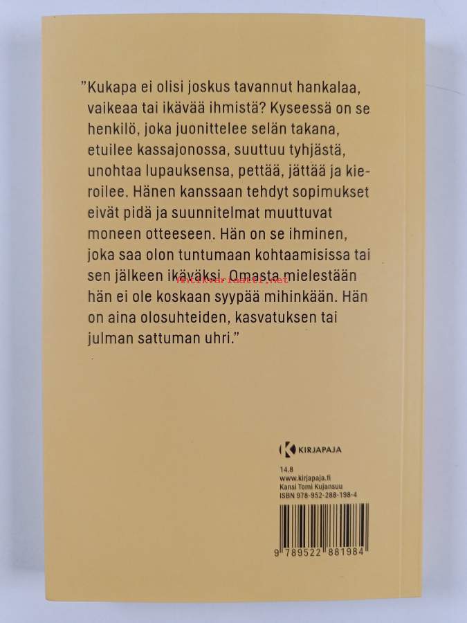 Asiasanat: ihmissuhteet, työelämä, työyhteisöt, henkinen hyvinvointi, persoonallisuus, vuorovaikutus, sosiaalinen vuorovaikutus, henkilösuhteet, henkinen väkivalta, ongelmat, persoonallisuuden piirteet, sosiaaliset taidot, konfliktit, kiusaaminen, ristiriidat, ihmistuntemus, psyykkinen kuormittavuus, yhteistyökyky