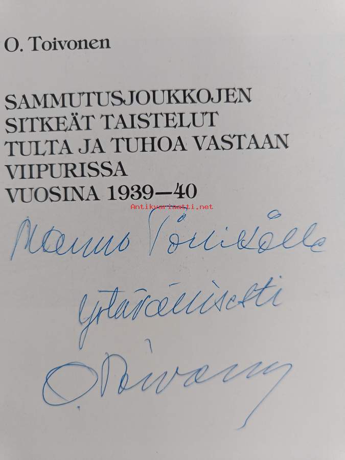 Sammutusjoukkojen sitkeät taistelut tulta ja tuhoa vastaan Viipurissa vuosina 1939-40 (signeerattu, tekijän omiste)
