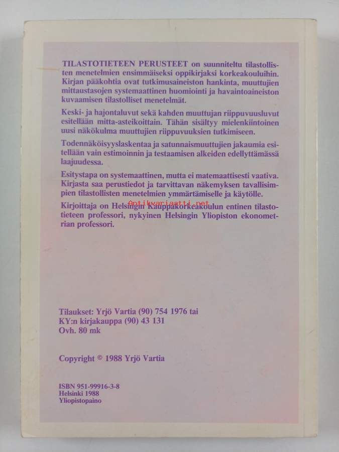 Tilastotieteen jatkokurssi : luentomoniste 1990 (tekijän omiste)