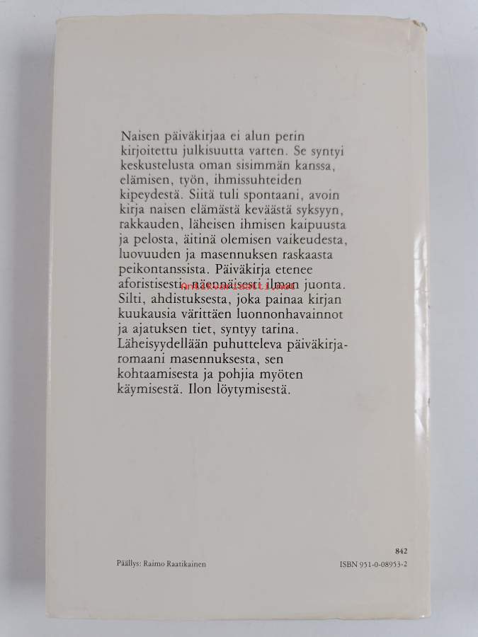 Punainen lanka. 1990. Romaani Punainen lanka kertoo aikuisen naisen tiestä oman paikkansa täyttäjäksi.