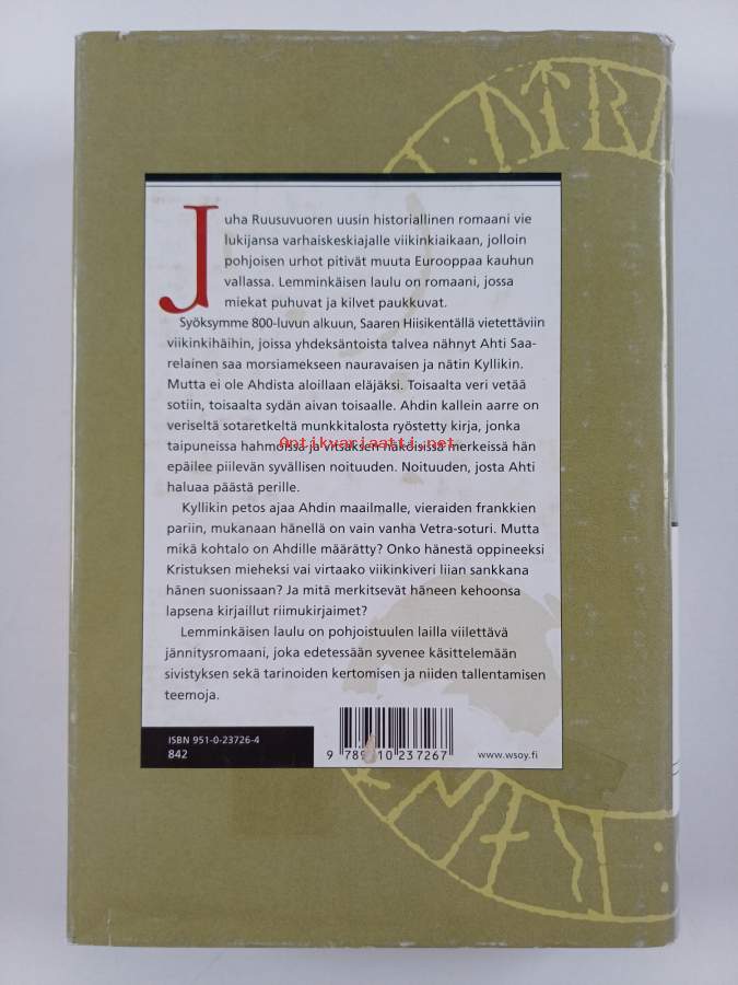 Hyvä. Tarkempi kuntoluokka: K3+ ; Pienoista kulumaa kansissa, aivan pienoista kolhua selkämyksen päissä. Kansipaperin kunto: jonkin verran kulumaa/pienoisia repeämiä