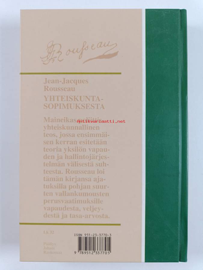Muu(t) tekijä(t): J V LehtonenAlkuteos: Du contrat social ou principes du droit politiqueAsiasanat: valtioteoriat, yhteiskuntafilosofia, yhteiskuntateoriat, yhteiskuntasopimus
