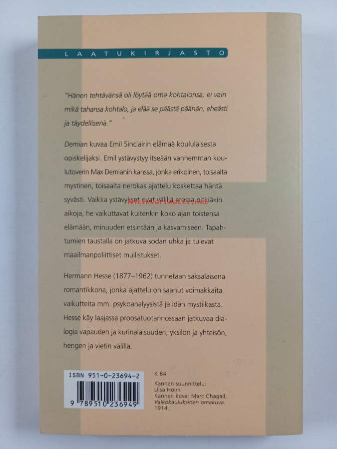 Demian - Emil Sinclairin nuoruudentarina. ( Kehitysromaani, itsetutkiskelu, sisäinen rauha, Nobel-kirjailijat )
