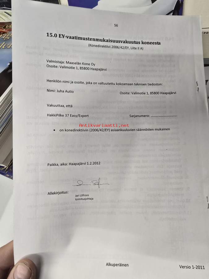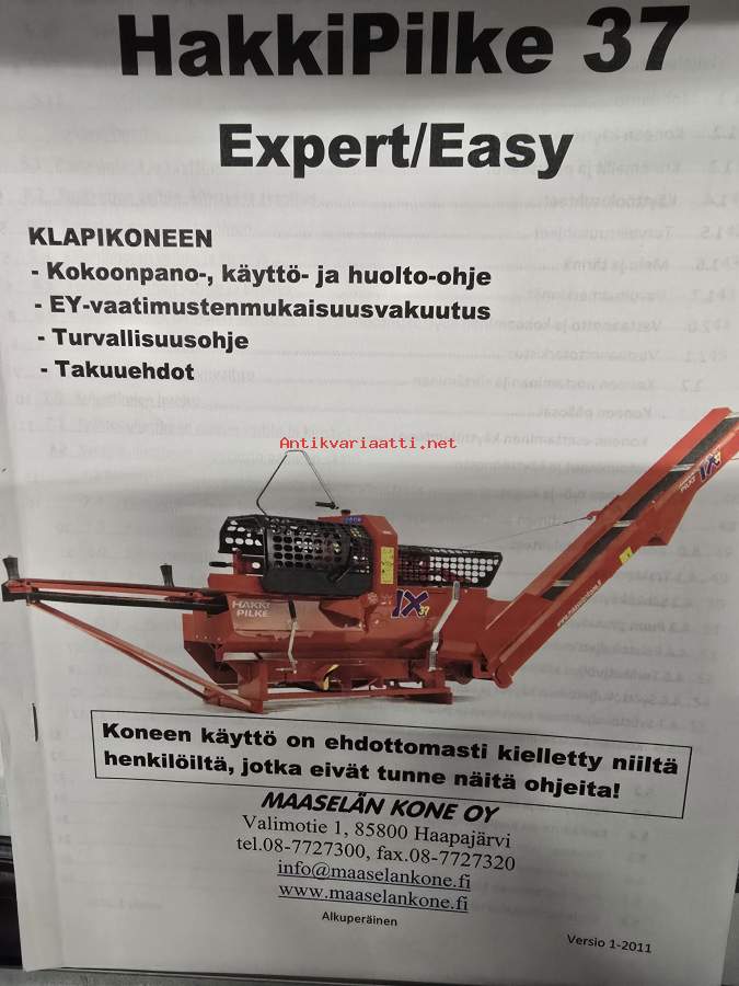 Hakkipilke 37 klapikoneen käyttö- ja huolto-ohje 1-2011