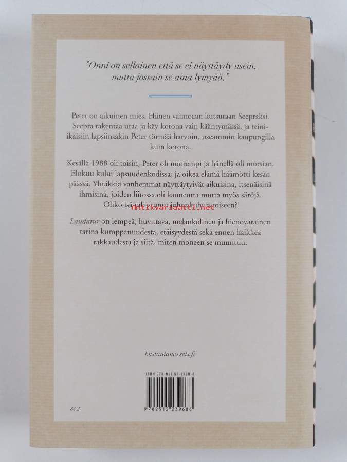 Erinomainen. Tarkempi kuntoluokka: K4- ; Selkämyksessä hieman vinoutta. Kansipaperin kunto: pientä kulumaa