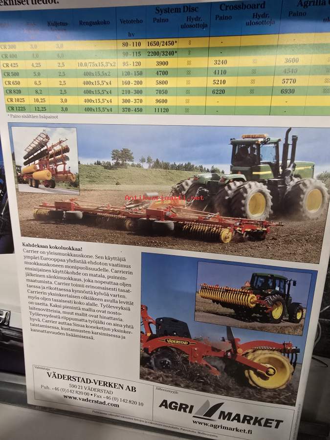 Väderstad Rollex sarja RX 450-1020 Kiekkojyrä valmistusnr. 8 000- Käyttöohjeet & varaosaluettelo -Instructions & parts in finnish