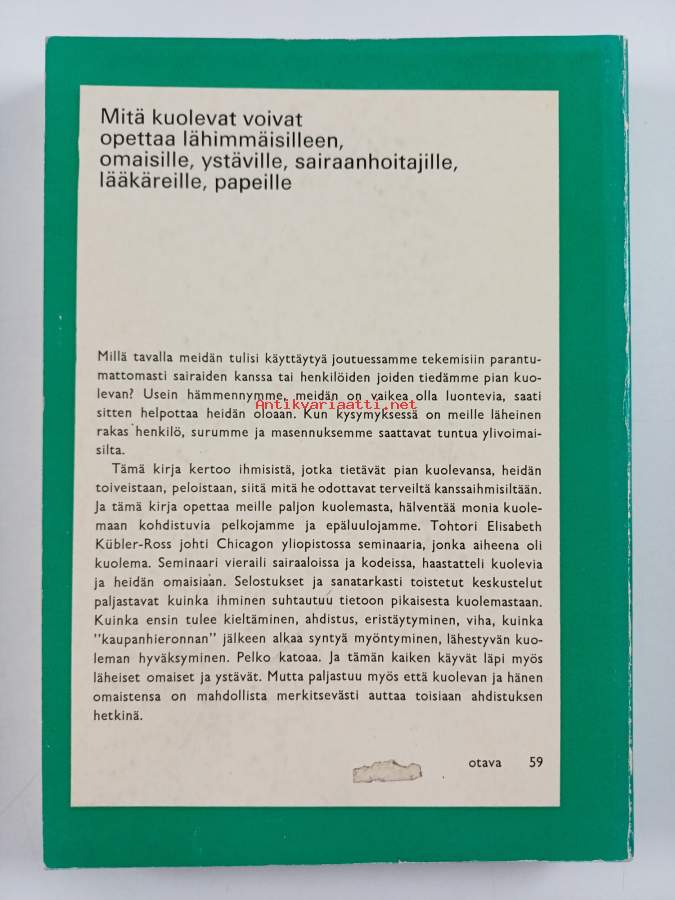 Muu(t) tekijä(t): Annukka AikioAlkuteos: On death and dyingAsiasanat: kuolema, surutyö, saattohoito
