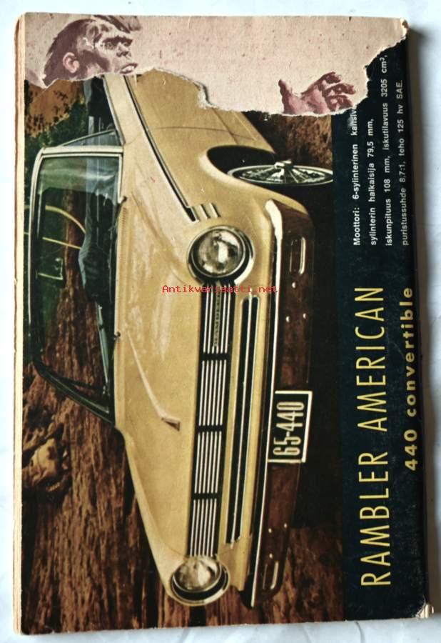 Kansissa kulumaa ja takakannen yläreuna repäisty pois. Kannessa suttu