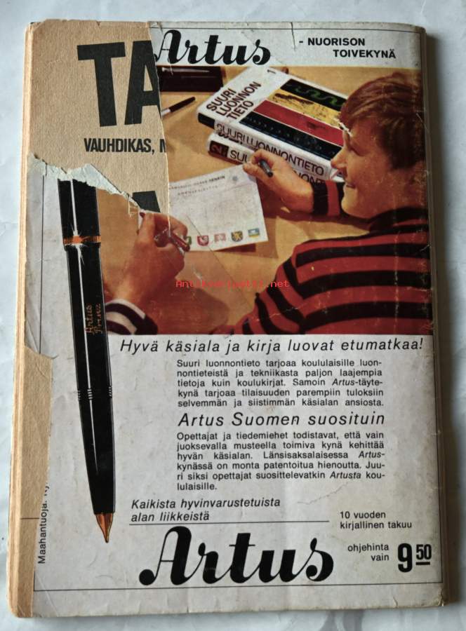 Kansissa kulumaa ja takakannen ylärkulma repäisty pois.