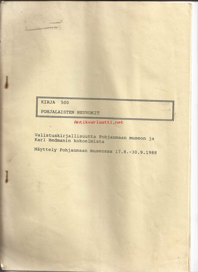 Pohjalaisen neuvokit - valistuskirjallisuutta Pohjanmaan museon ja Karl Hedmanin kokoelmista näyttely 1988