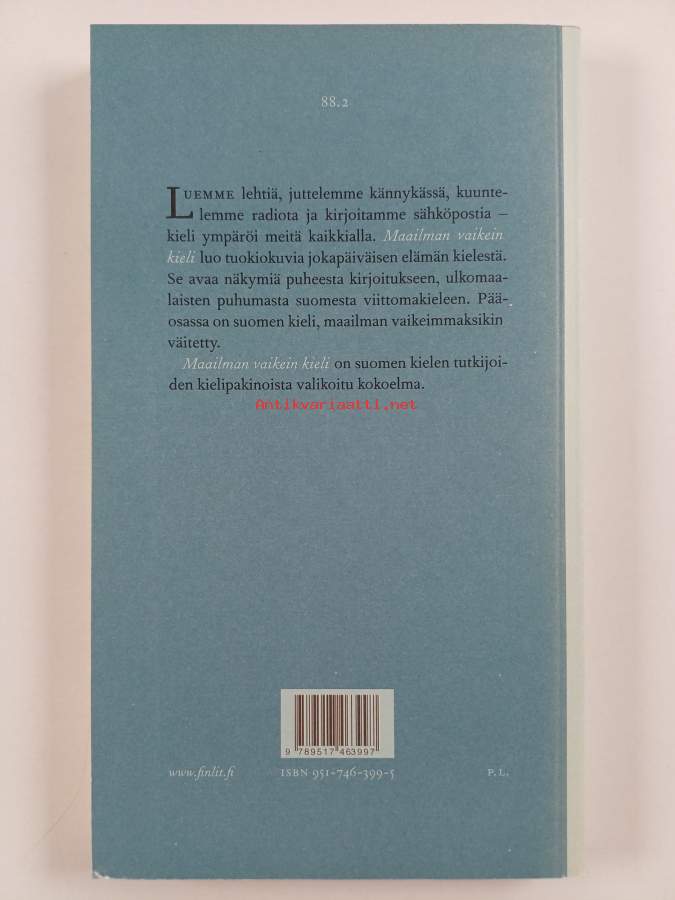Muu(t) tekijä(t): Annukka Varteva, Lari KotilainenSarja: Suomalaisen Kirjallisuuden Seuran toimituksia 882Asiasanat: suomen kieli, kielenkäyttö, sanallinen viestintä, kieli