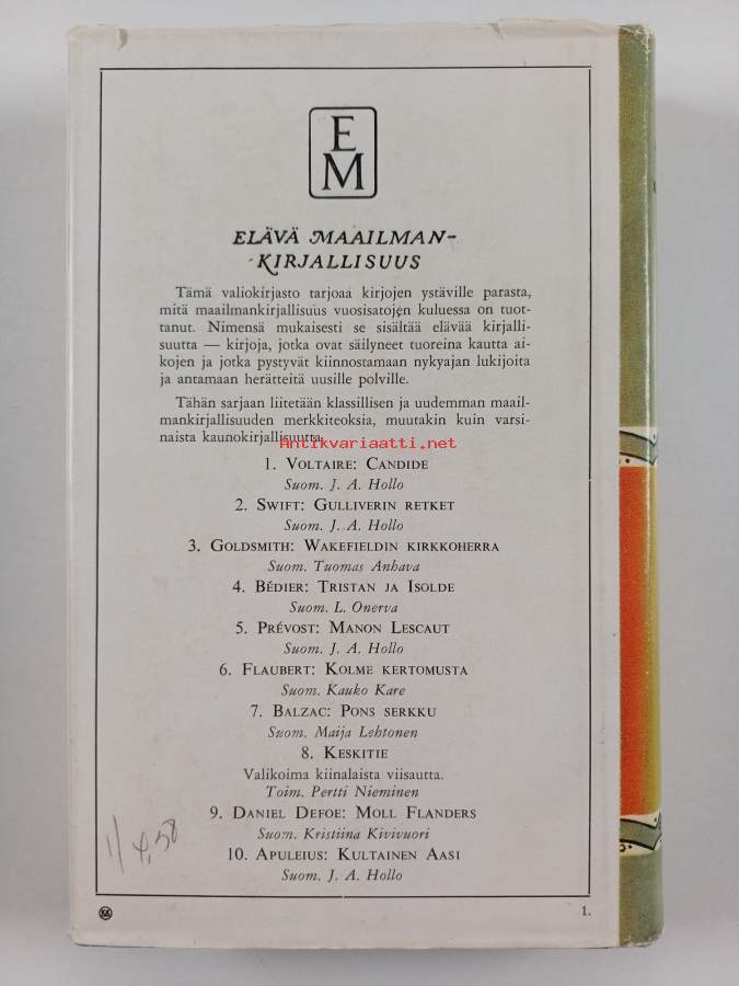 Hyvä. Hieman kulumaa, selkämyksessä hieman vinoutta. Kansipaperin kunto: jonkin verran kulumaa/pienoisia repeämiä