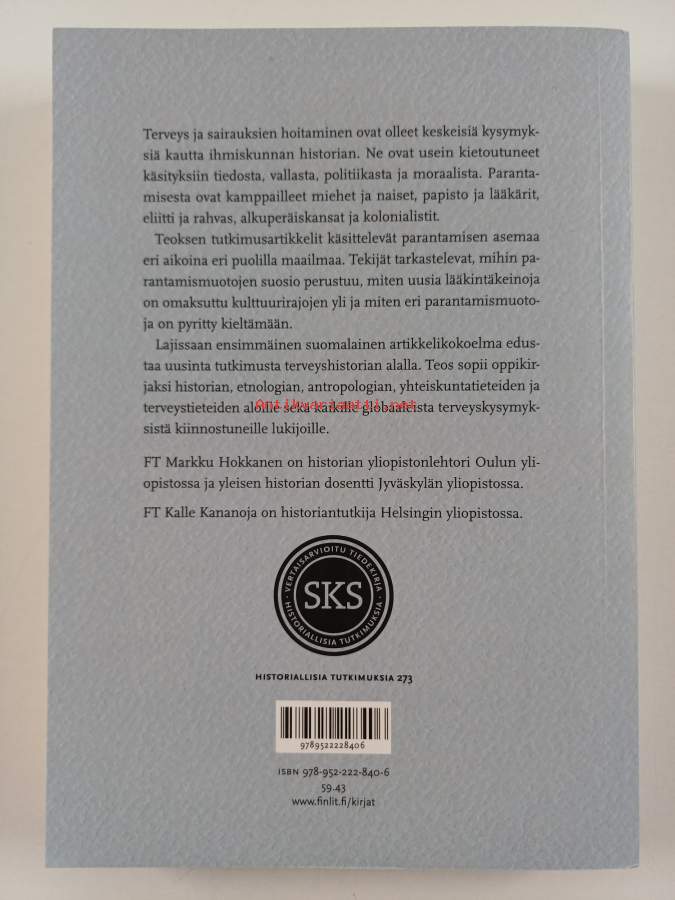 Muu(t) tekijä(t): Ulla Piela, Markku Hokkanen ym.Sarja: Historiallisia tutkimuksia 273Asiasanat: historia, terveys, vaihtoehtolääkintä, lääketiede, terveydenhoito, vuorovaikutus, kansatiede, kansanlääkintä, parantajat, sairaus, terveydenhuolto, käsitykset, uskontoantropologia, parantaminen (terveys), uppfattningar, hälsa, lääketieteellinen antropologia, Medicin, hälso- och sjukvård, alternativ medicin, etnologi, växelverkan, hälsovård, sjukdom (tillstånd), folkmedicin, sosiokulttuuriset tekijät, medicinsk antropologi, botare, helande, sociokulturella faktorer, religionsantropologi