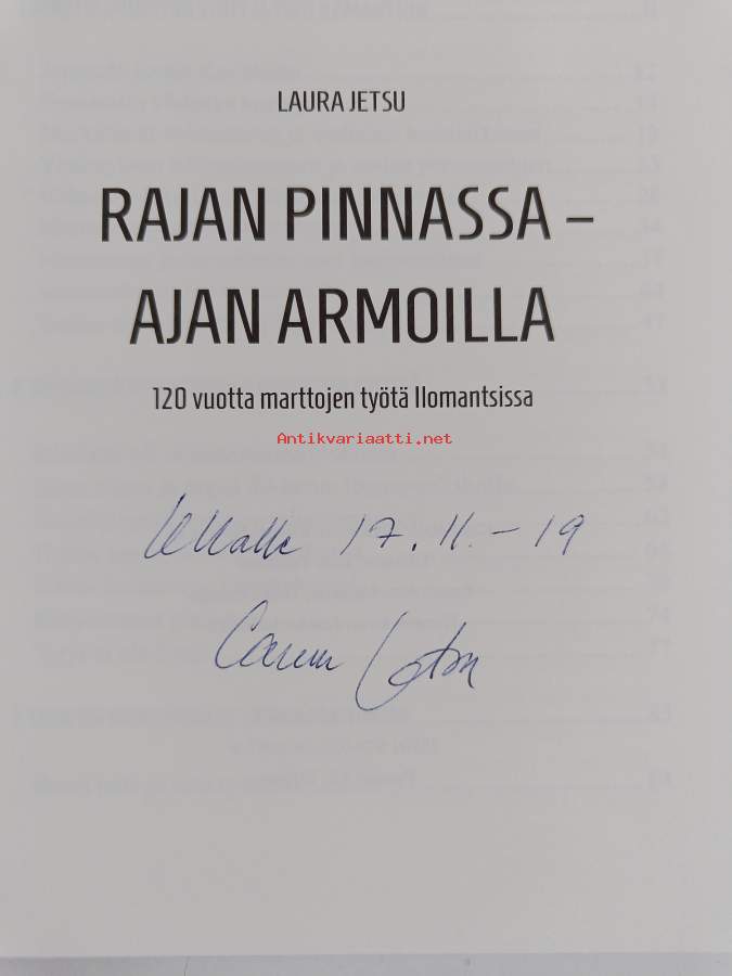Rajan pinnassa - ajan armoilla : 120 vuotta marttojen työtä Ilomantsissa (signeerattu, tekijän omiste)
