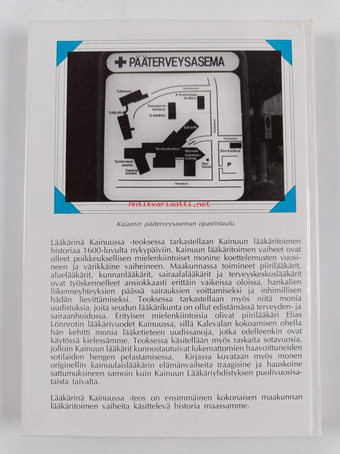 Merkinnät: omistajamerkintä leikattu pois etulehden ylälaidastaAsiasanat: historia, järjestöhistoriikit, henkilöhistoria, järjestöt, lääkärit, kansanlääkintä, terveydenhuolto, sairaalat, sairaanhoito, terveydenhuoltohenkilöstö, alueellinen terveydenhuolto, personhistoria, organisationshistoriker, hälso- och sjukvård, sjukhus, läkare, sjukvård, folkmedicin, föreningar, regional hälsovård, hälsovårdspersonal