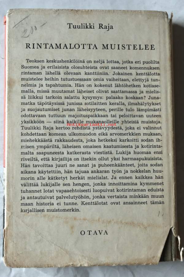Rintamalotta muistelee, 1956. 1. painos. Ilmestyi ensin jatkokertomuksena Suomen Kuvalehdessä..