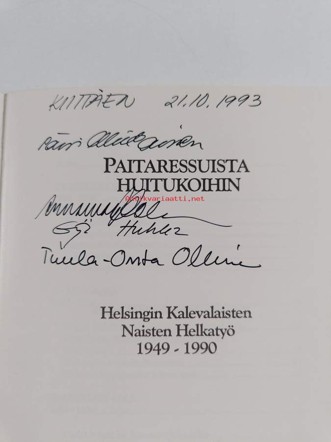 Paitaressuista Huitukoihin : Helsingin kalevalaisten naisten Helkatyö 1949-1990 (signeerattu, tekijän omiste)